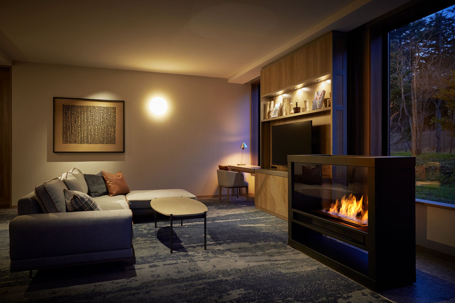 2023年12月開業の「ふふ 旧軽井沢 静養の森」様へEcoSmart Fireのバーナーを使用したオリジナル暖炉を全客室に採用いただきました。