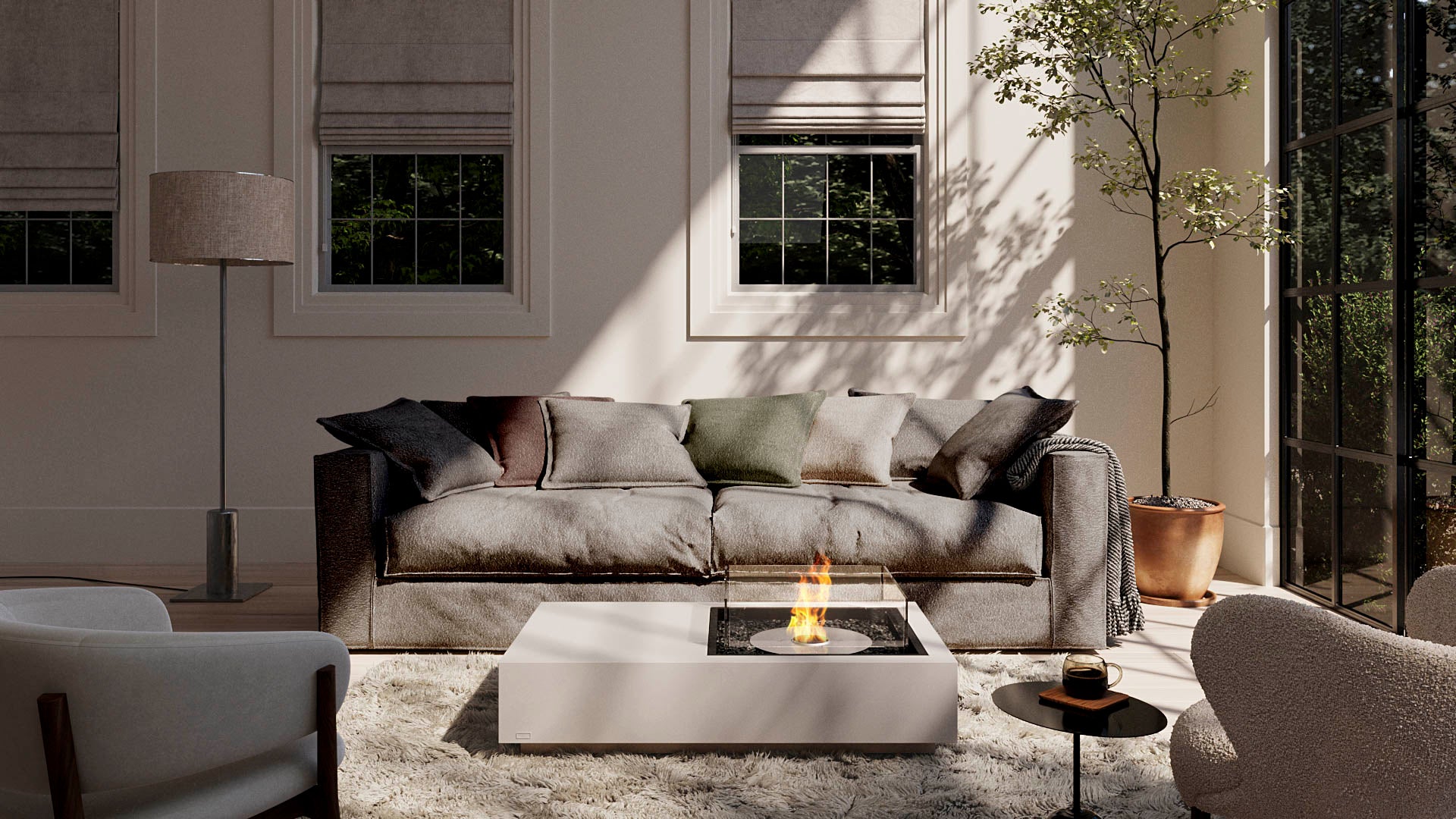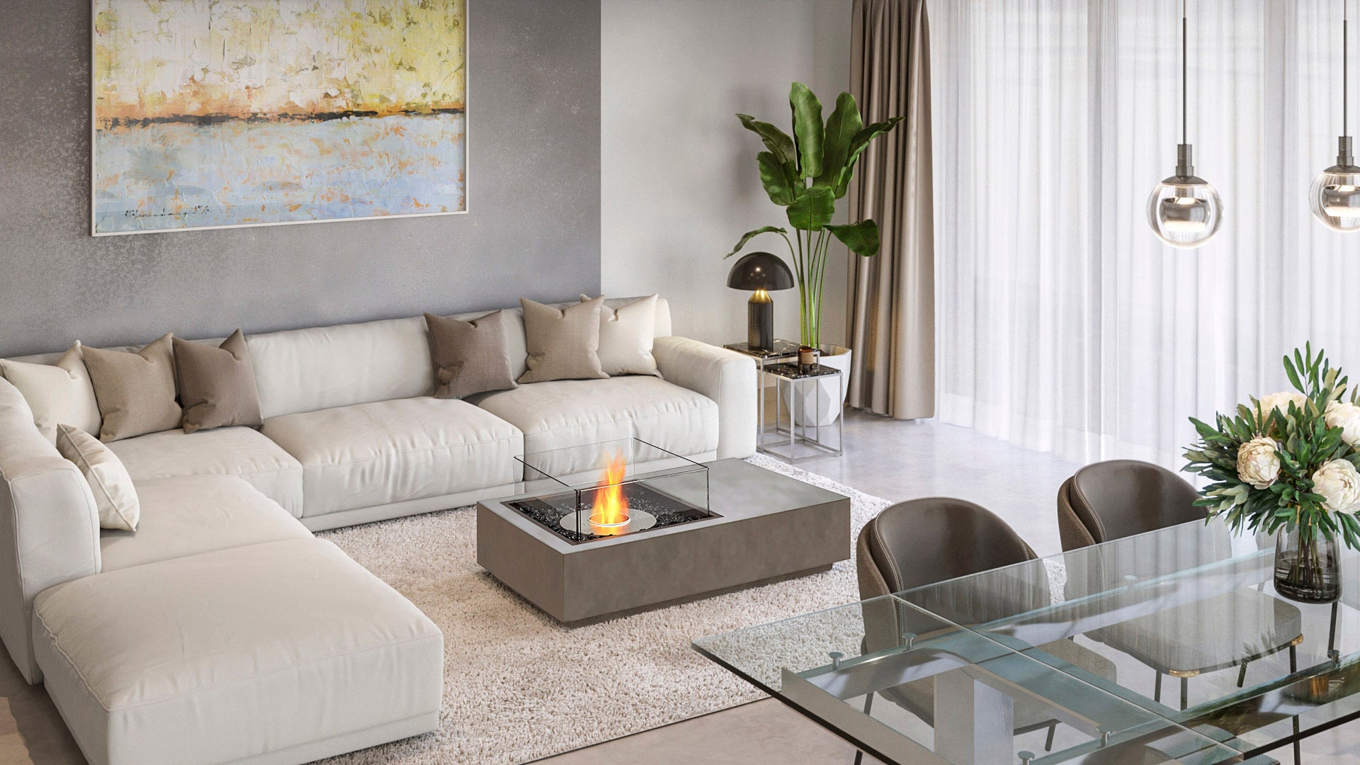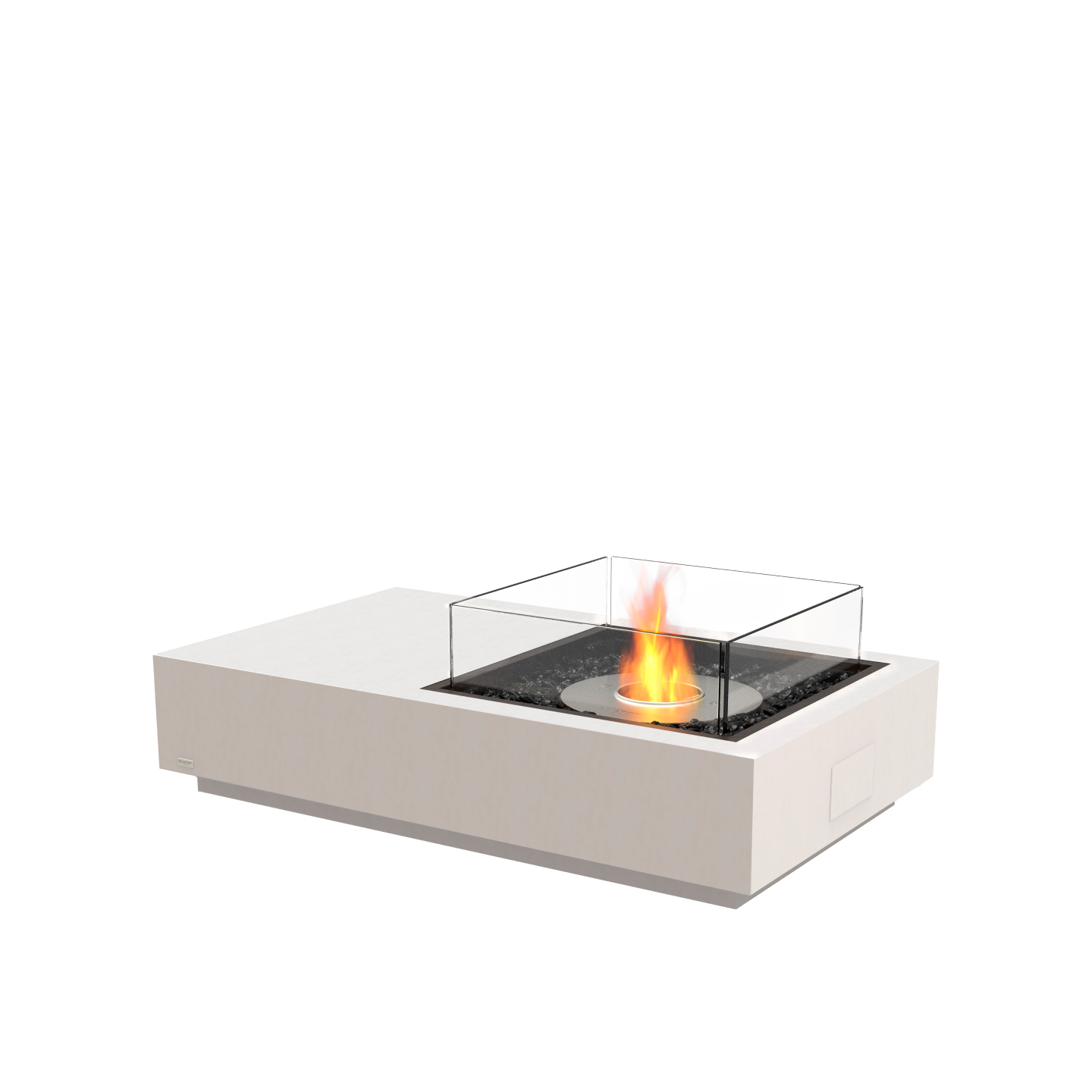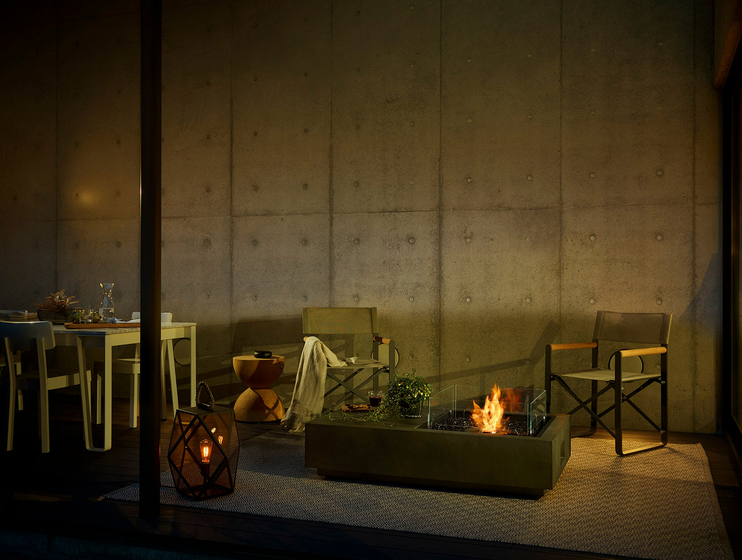 エコスマートファイヤー「Manhattan 50」は日本の住宅に適したサイズで開発された2018年リリースの製品です。W1270×D762で展開している本製品は日本のリビングシーンやテラス等に多く適用できるサイズとなっています。内蔵バーナーは「AB3」バーナーを採用、15帖程度を暖める事が可能で、ローテーブルとしても使用できます。住宅は勿論、ホテルなどのテラスに複数使いもでき、幅広い設置が可能です。本体部分は熱、雨、風に強く室内空間、屋外空間両方でご使用いただけます。コンクリートカラーをモチーフにした「Natural」と黒の「Graphite」白の「Bone」の3色と、経年変化を楽しめる天然木の「Teak」から、お好きなカラーを空間に合わせてお選び頂けます。バーナー周囲に敷き詰める黒のグラスチャコールとガラススクリーンが標準装備されています。別売りのProtective Coverをご使用いただければ使用しない際にも製品をクリーンに保つことが可能です。バイオエタノール暖炉は綺麗なオレンジ色の炎を演出します。暖房能力も高く、燃焼時に発生する水蒸気により加湿効果も得られます。