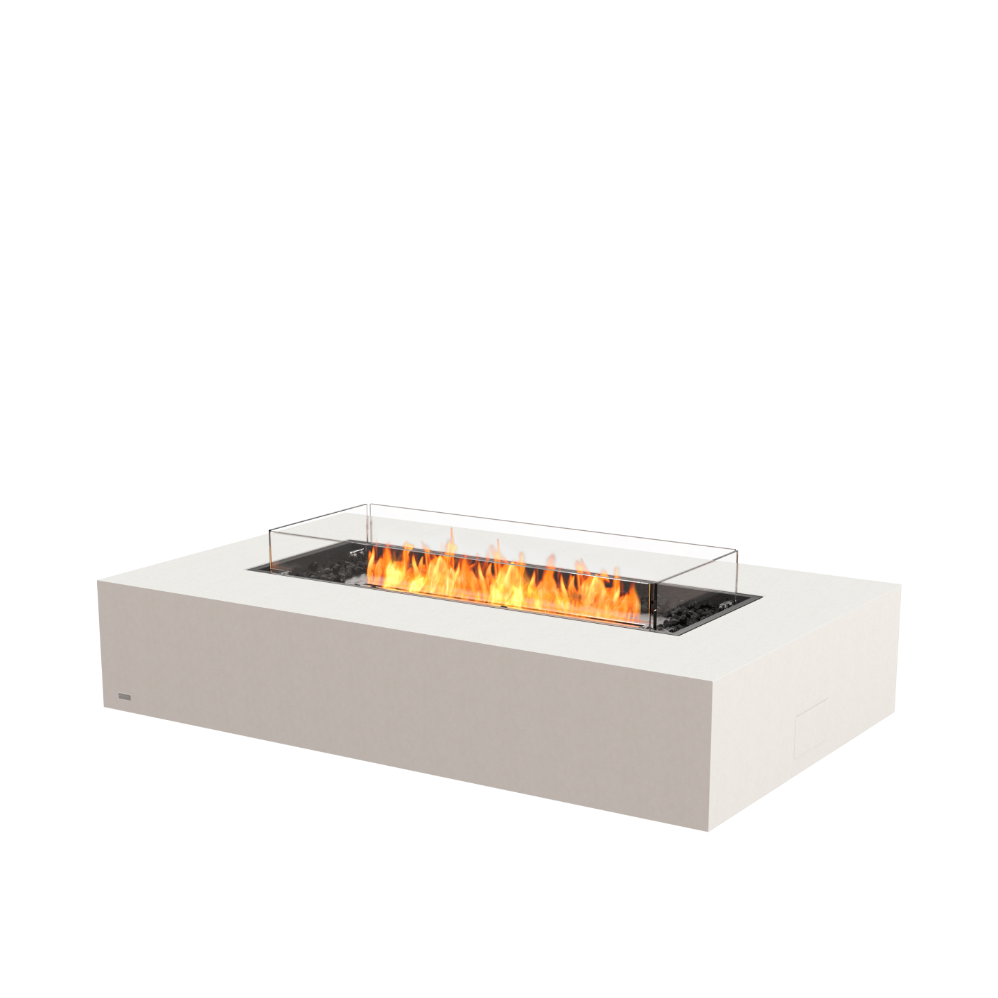 エコスマートファイヤー「Wharf 65」は同シリーズの中でもサイズが大きく重厚感があり、住宅の大型テラスやホテルなどの商業施設に人気の製品です。内蔵バーナーは「XL900」を採用し、他製品と異なり横長の綺麗な炎を演出します。本体部分は熱、雨、風に強く室内空間、屋外空間両方でご使用いただけます。コンクリートカラーをモチーフにした「Natural」と黒の「Graphite」白の「Bone」の3色と、経年変化を楽しめる天然木の「Teak」から、お好きなカラーを空間に合わせてお選び頂けます。バーナー周囲に敷き詰める黒のグラスチャコールとガラススクリーンが標準装備されています。別売りのProtective Coverをご使用いただければ使用しない際にも製品をクリーンに保つことが可能です。バイオエタノール暖炉は綺麗なオレンジ色の炎を演出します。暖房能力も高く、燃焼時に発生する水蒸気により加湿効果も得られます。
