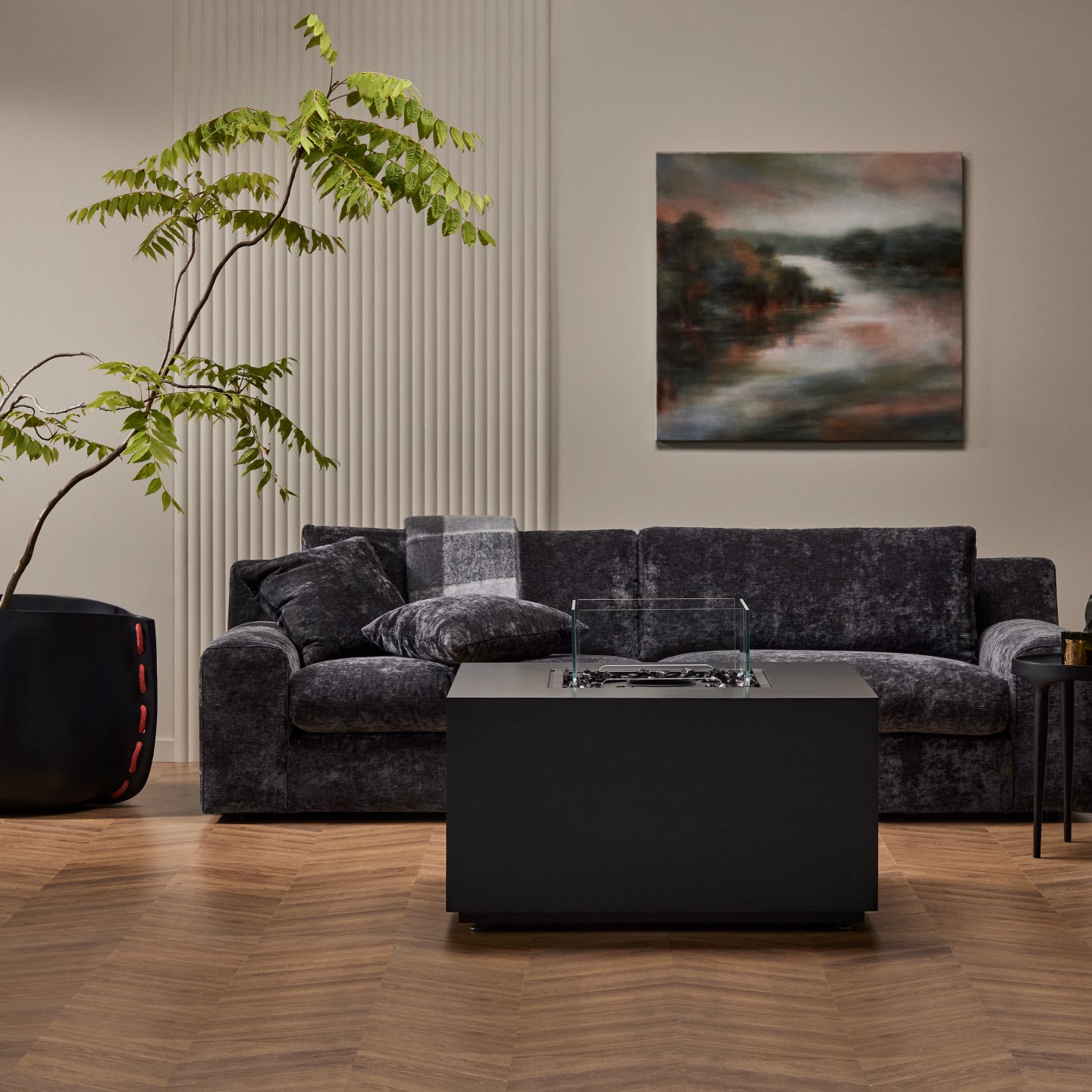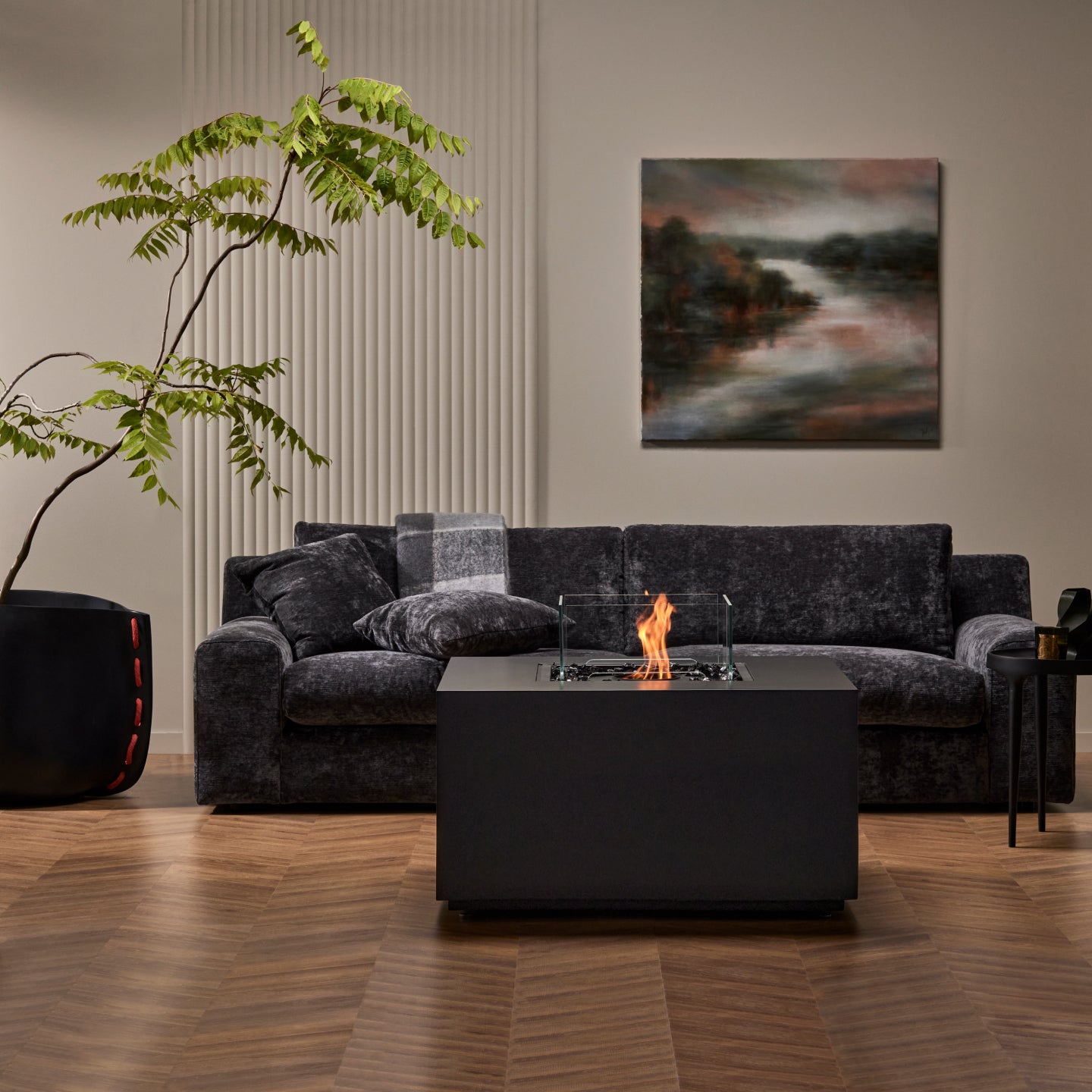 高さのあるテーブル型暖炉。
