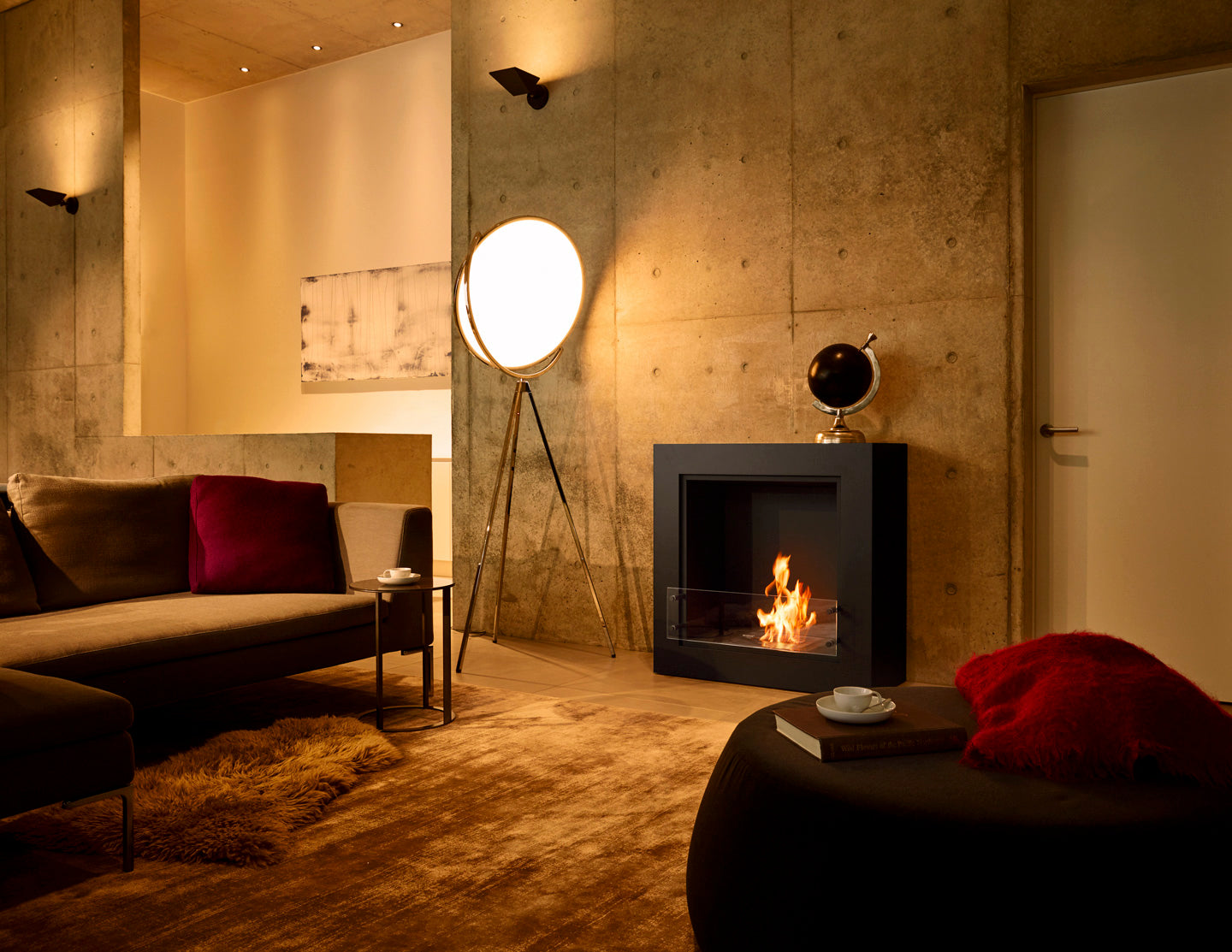 エコスマートファイヤー「Cube」は同シリーズ内でもコンパクトに設計されており、正面から見ると正方形にデザインされているのが特徴です。コンパクトな為小さい空間でも設置でき、場所を選びません。住宅、商業施設等でも設置が可能です。「BK5」バーナーが搭載されており火力調整が可能な他、25帖程の暖房能力も有しています。外側はMDF材に塗装を施しており計7色から、内側はステンレス、ブラックスチールの2色からお選びいただけます。バイオエタノール暖炉は綺麗なオレンジ色の炎を演出します。暖房能力も高く、燃焼時に発生する水蒸気により加湿効果も得られます。