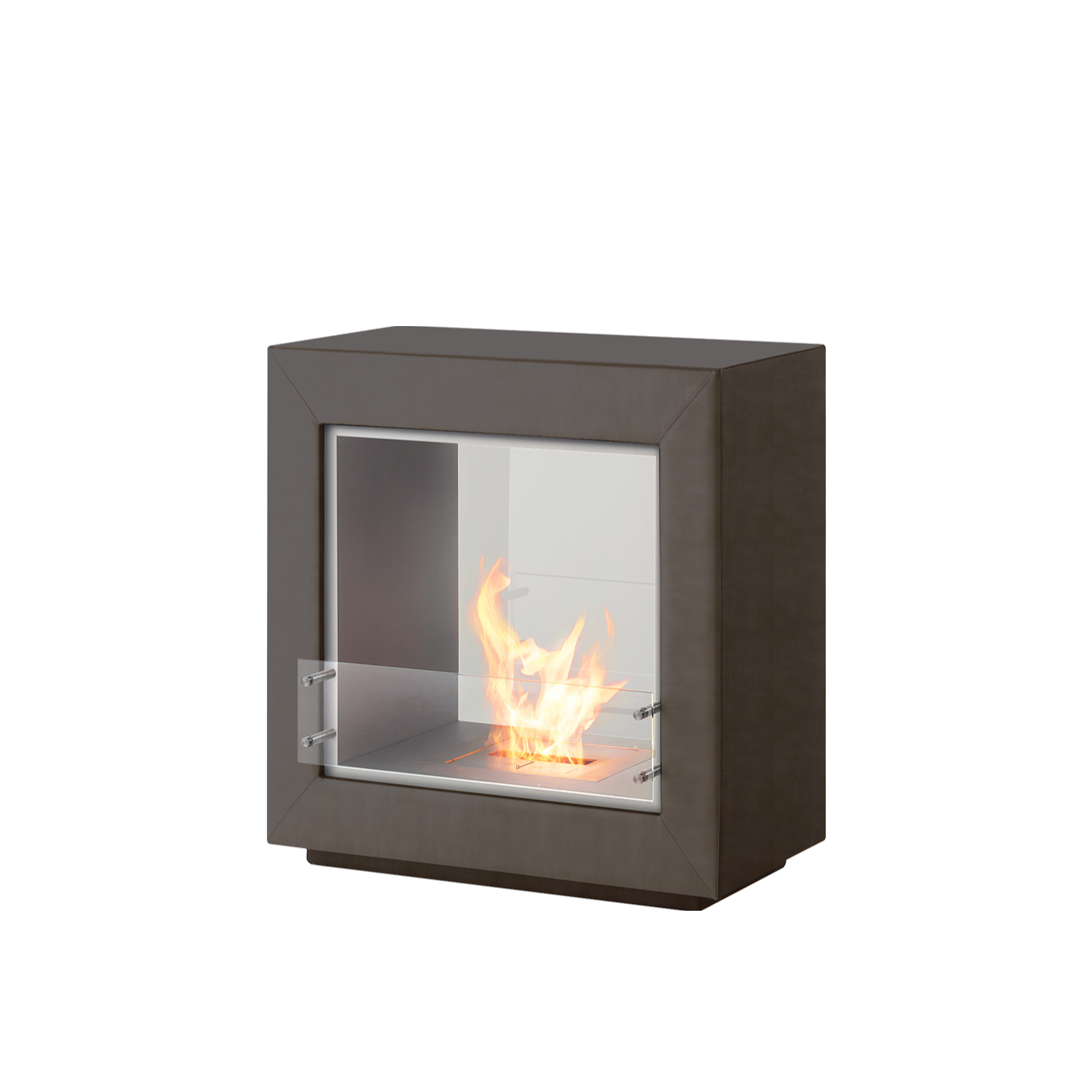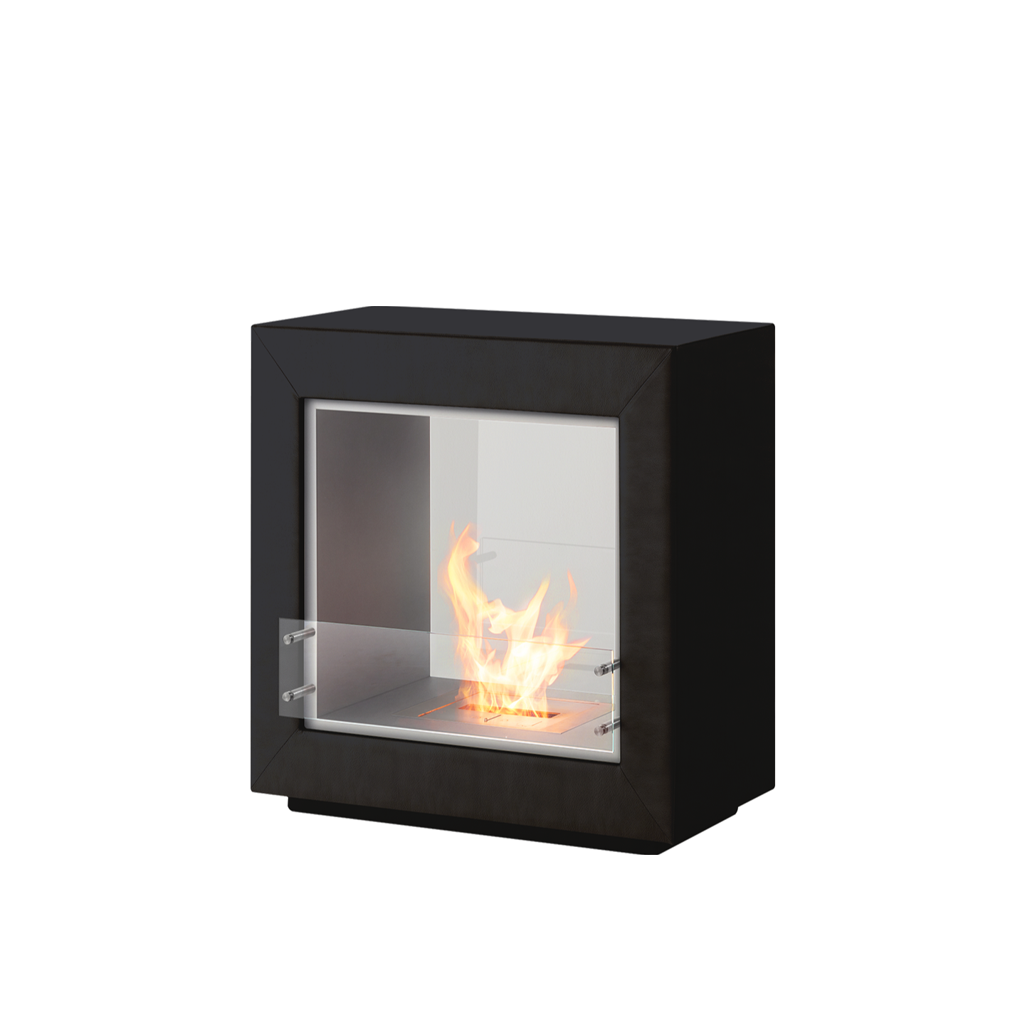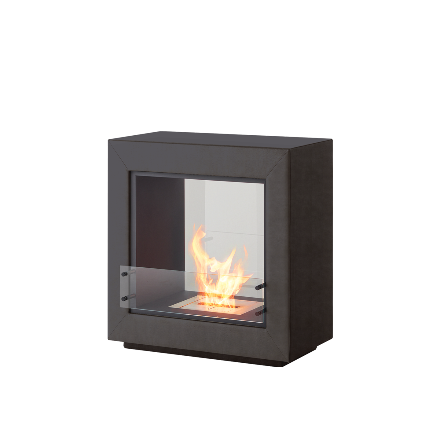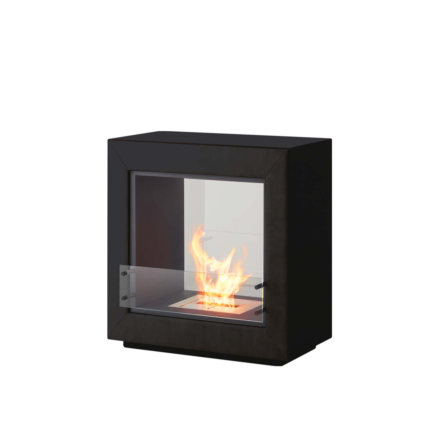 エコスマートファイヤー「Fusion Leather」はシースルー型のデザインで背面が耐熱性の強化ガラスで仕上げられています。その為、CubeやAspectのように背面に壁を背負わなくても設置が可能です。空間の中央に設置し、両面から火を鑑賞するなど設置の幅が大きく広がります。奥行が約50cmある為、重厚感があります。「BK5」バーナーが搭載されており火力調整が可能な他、25帖程の暖房能力も有しています。外側は本革張りで計4色から、内側はステンレス、ブラックスチールの2色からお選びいただけます。バイオエタノール暖炉は綺麗なオレンジ色の炎を演出します。暖房能力も高く、燃焼時に発生する水蒸気により加湿効果も得られます。