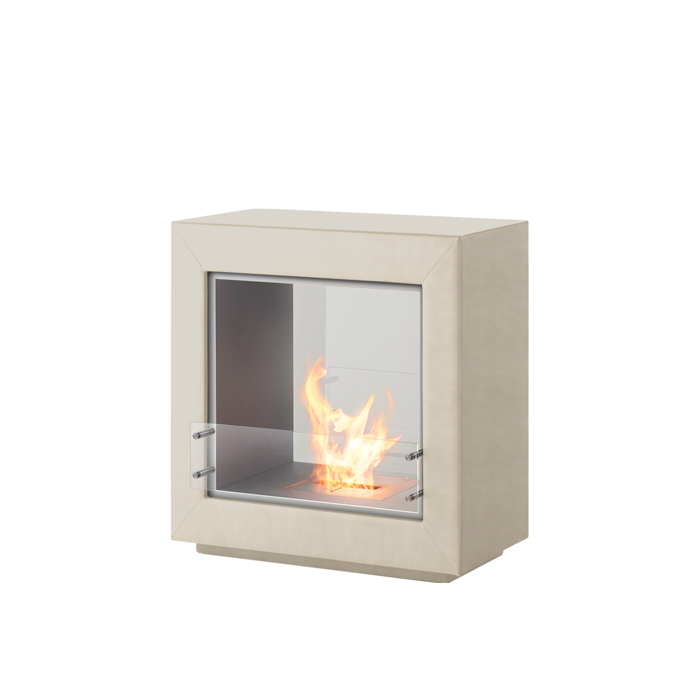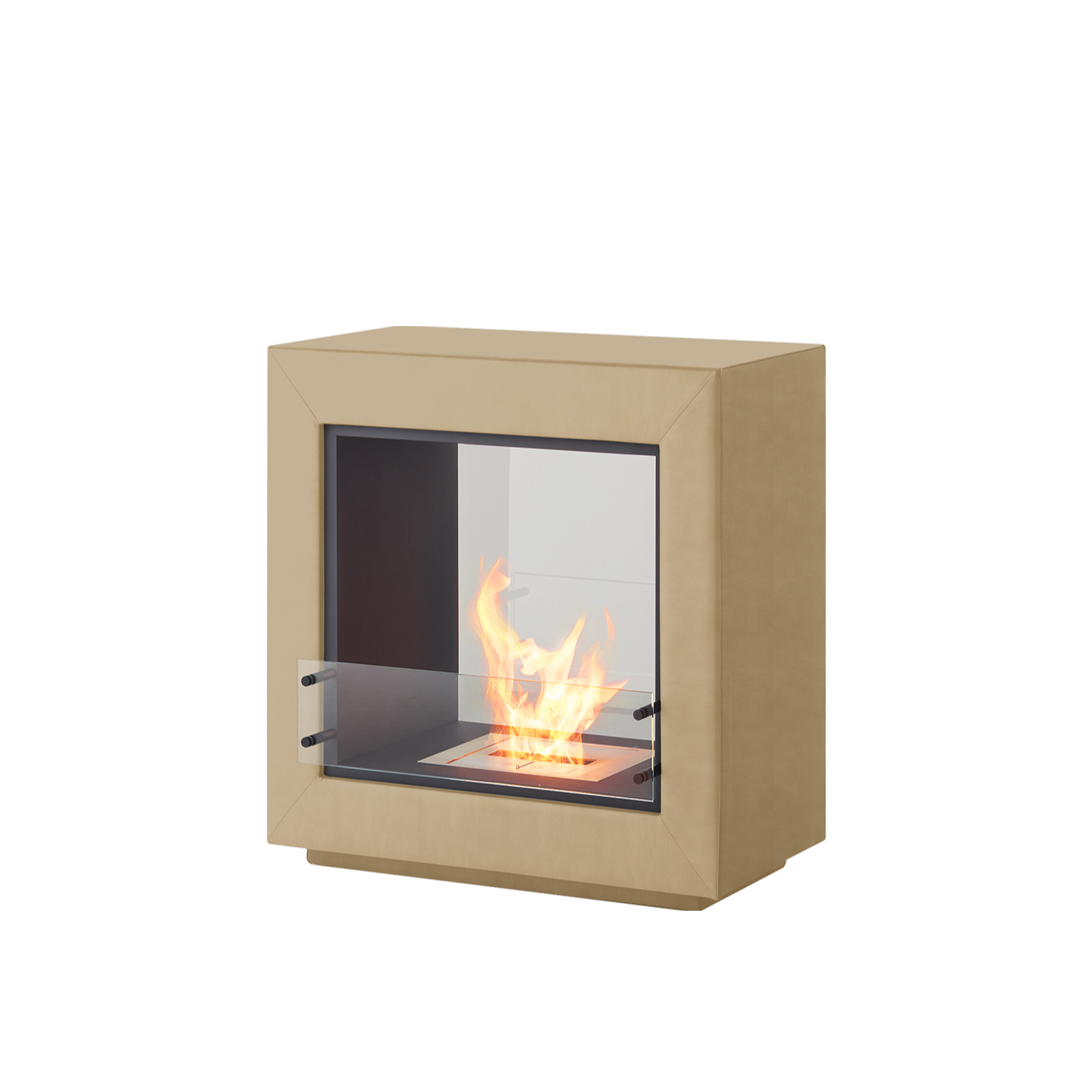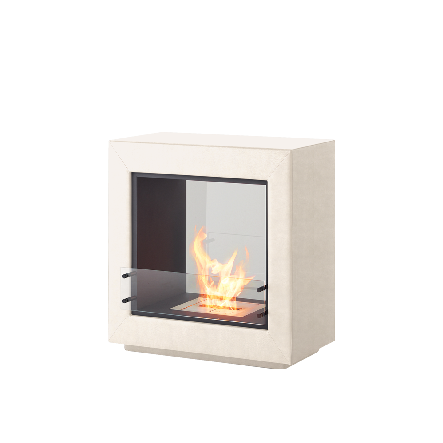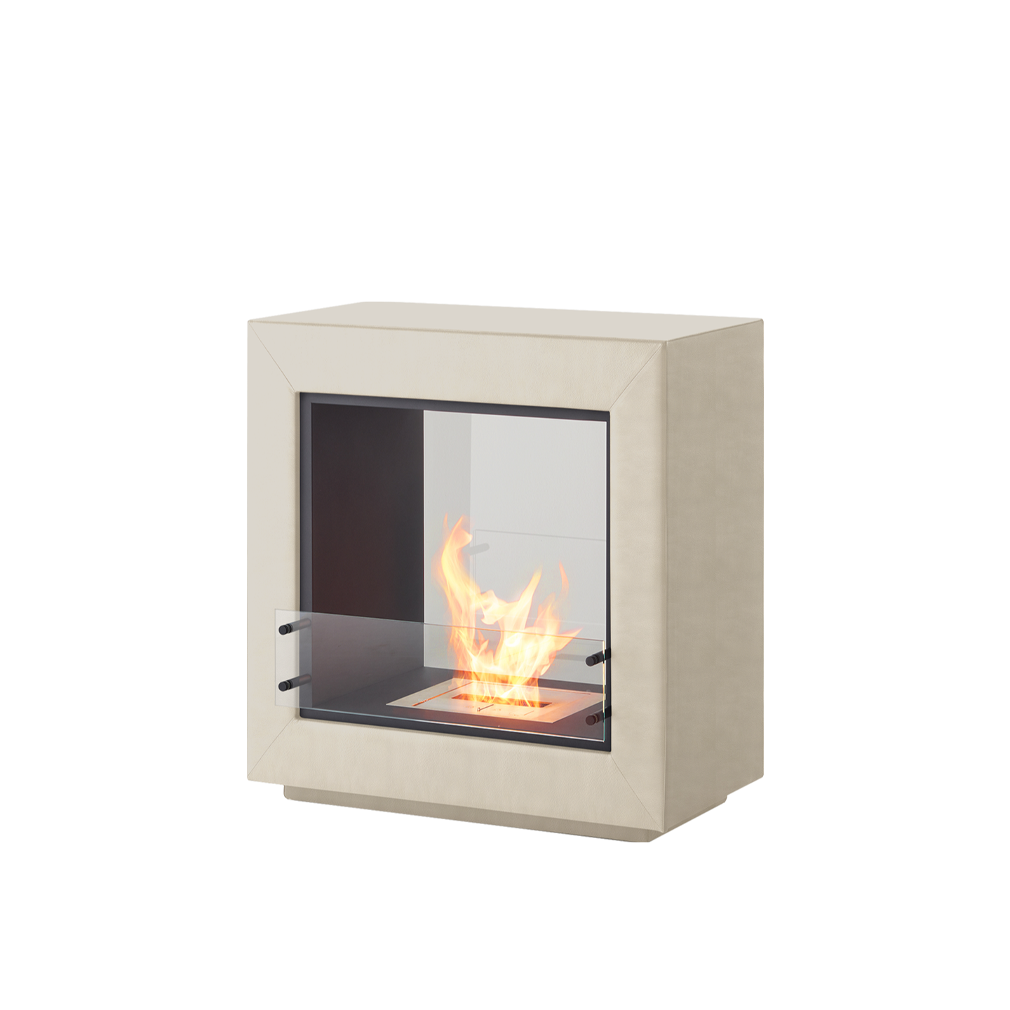 エコスマートファイヤー「Fusion Leather」はシースルー型のデザインで背面が耐熱性の強化ガラスで仕上げられています。その為、CubeやAspectのように背面に壁を背負わなくても設置が可能です。空間の中央に設置し、両面から火を鑑賞するなど設置の幅が大きく広がります。奥行が約50cmある為、重厚感があります。「BK5」バーナーが搭載されており火力調整が可能な他、25帖程の暖房能力も有しています。外側は本革張りで計4色から、内側はステンレス、ブラックスチールの2色からお選びいただけます。バイオエタノール暖炉は綺麗なオレンジ色の炎を演出します。暖房能力も高く、燃焼時に発生する水蒸気により加湿効果も得られます。