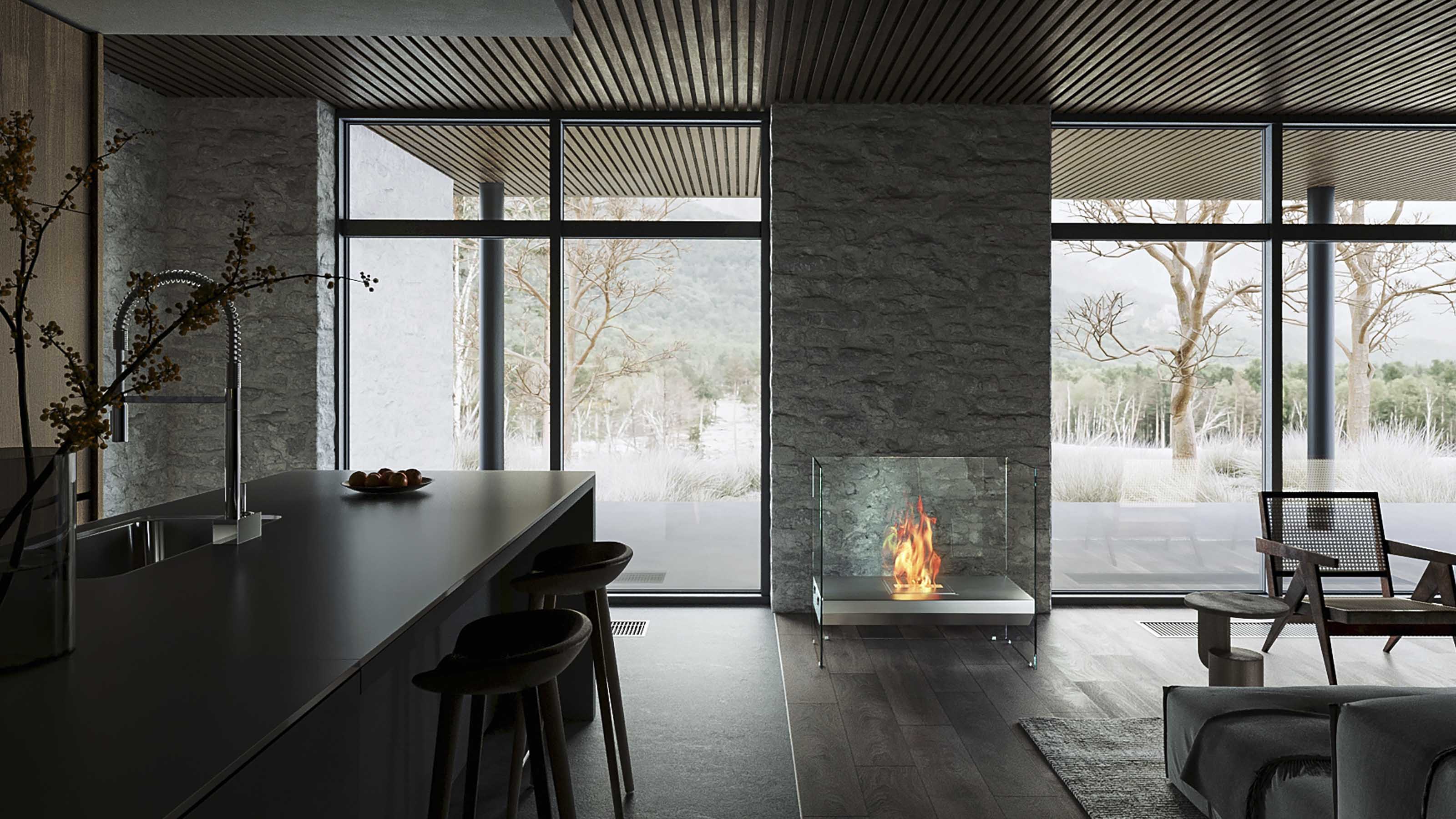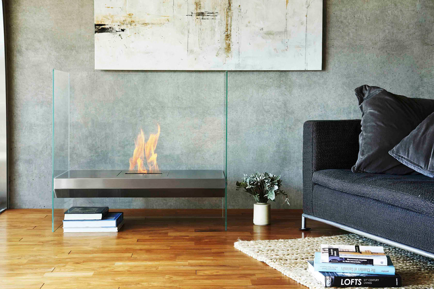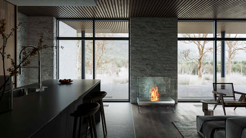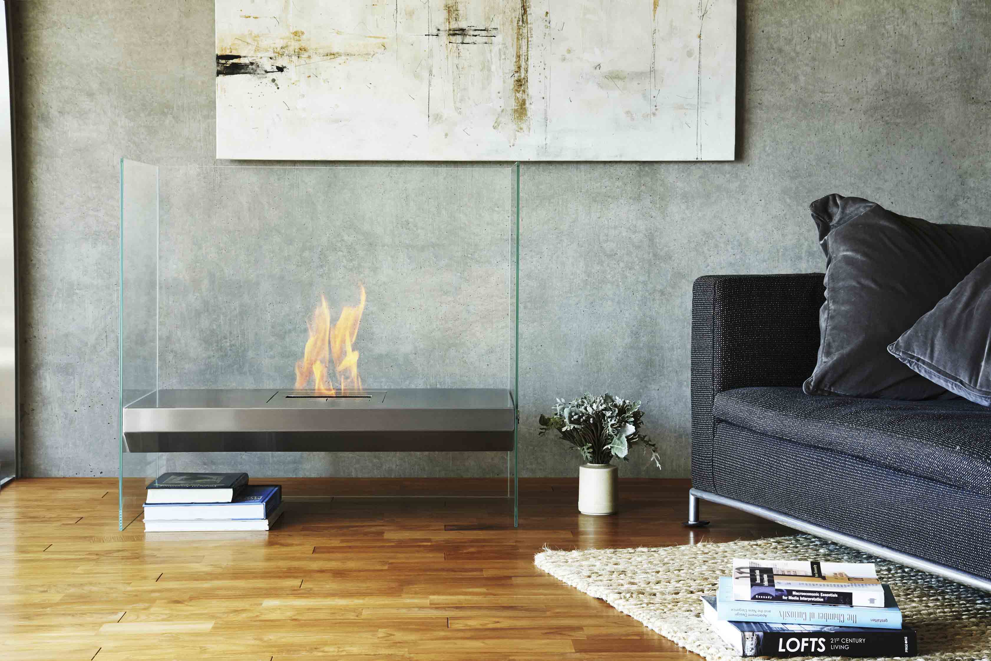 エコスマートファイヤー「Igloo」は全面が耐熱性のガラスで囲われている特徴的なデザインです。その圧迫感の無いシンプルなデザインは住宅への採用の他、ホテルなどの商業施設への採用も多くあります。バーナーには「BK5」が標準装備されており、25帖程を暖める事の出来る暖房能力と火力調整も可能です。別売りのPlasma Fure Screenと組み合わせて設置することにより小さいお子様やペットのいる家庭でも安全にご使用いただけます。バイオエタノール暖炉は綺麗なオレンジ色の炎を演出します。暖房能力も高く、燃焼時に発生する水蒸気により加湿効果も得られます。
