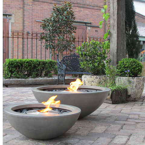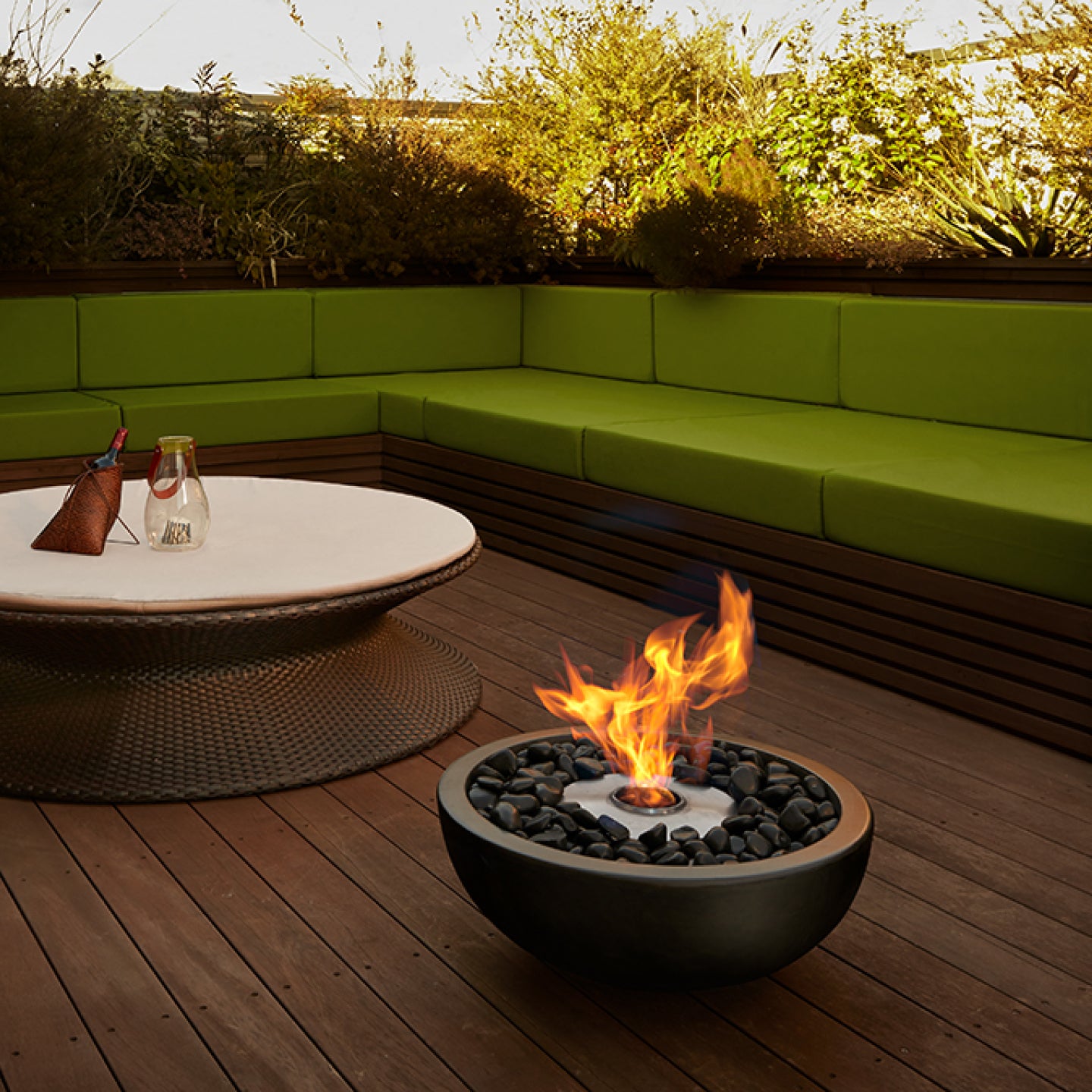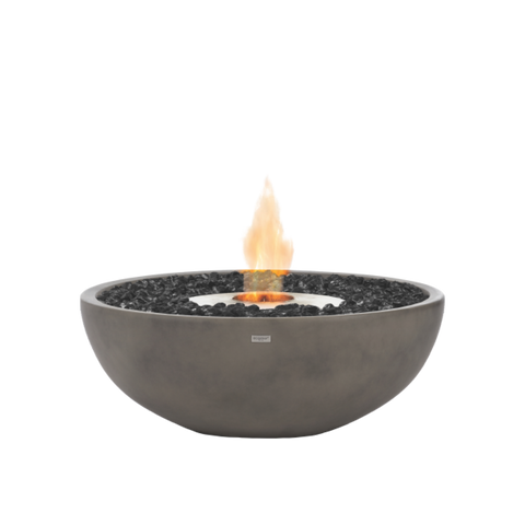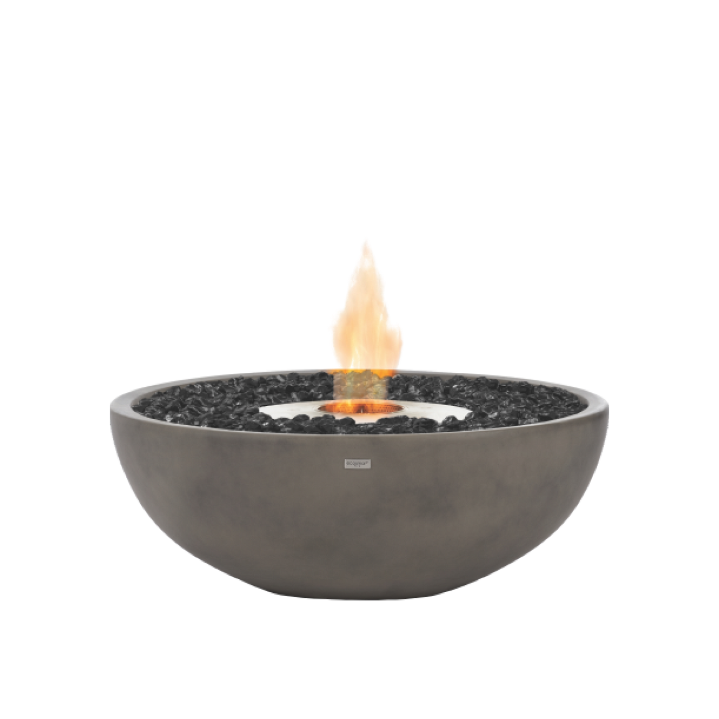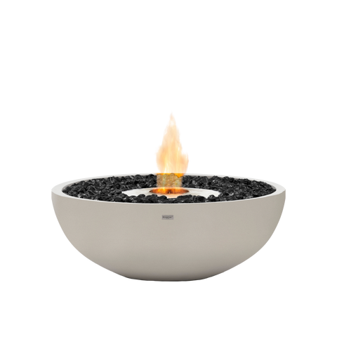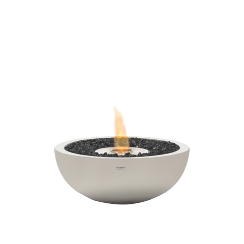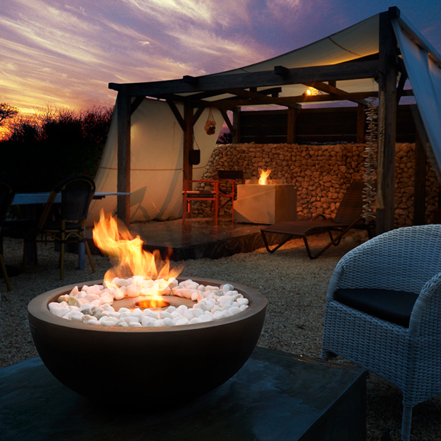 エコスマートファイヤー「Mix」はボウル型のデザインでホテルなどの商業施設の屋外への採用が多い製品です。サイズは600 / 850 と2パターンのサイズ展開があります。コンクリート部分はコンクリートカラーをモチーフにした「Natural」と黒の「Graphite」白の「Bone」3色からお選びいただけます。別売りのProtecitve Coverをご使用いただければ使用しない際にも製品をクリーンに保つことが可能です。バイオエタノール暖炉は綺麗なオレンジ色の炎を演出します。暖房能力も高く、燃焼時に発生する水蒸気により加湿効果も得られます。