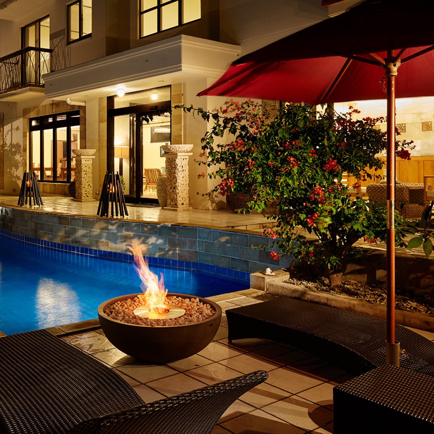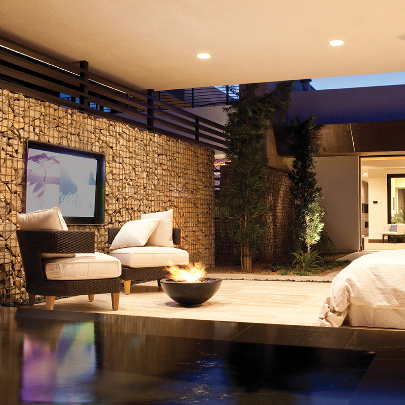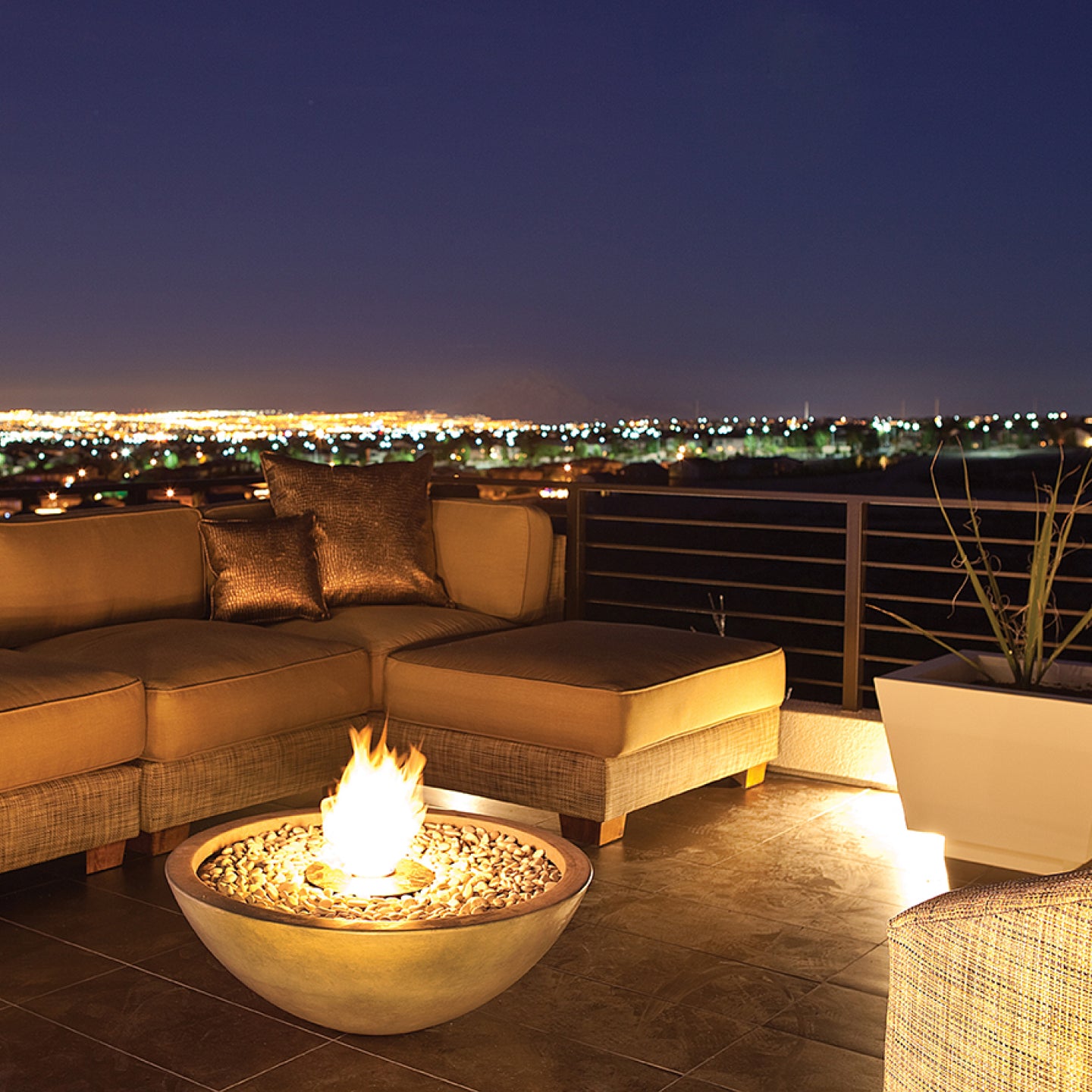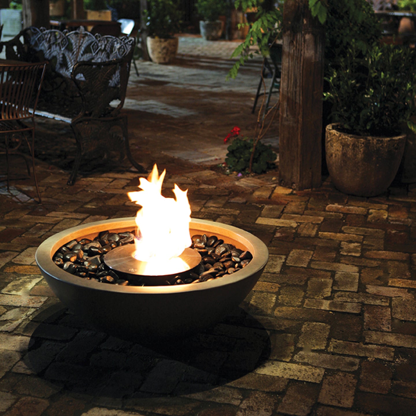 エコスマートファイヤー「Mix」はボウル型のデザインでホテルなどの商業施設の屋外への採用が多い製品です。サイズは600 / 850 と2パターンのサイズ展開があります。コンクリート部分はコンクリートカラーをモチーフにした「Natural」と黒の「Graphite」白の「Bone」3色からお選びいただけます。別売りのProtecitve Coverをご使用いただければ使用しない際にも製品をクリーンに保つことが可能です。バイオエタノール暖炉は綺麗なオレンジ色の炎を演出します。暖房能力も高く、燃焼時に発生する水蒸気により加湿効果も得られます。