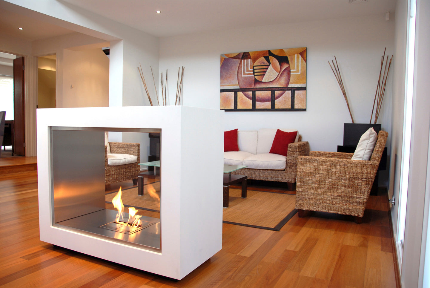 エコスマートファイヤー「Vision」は同シリーズの中で一番大きいサイズで高級感、重厚感があります。また背面が耐熱性の強化ガラスで覆われている為、空間の中央に設置することが可能です。「BK5」バーナーが搭載されており火力調整が可能な他、25帖程の暖房能力も有しています。外側はMDF材に塗装を施しており計7色から、内側はステンレス、ブラックスチールの2色からお選びいただけます。バイオエタノール暖炉は綺麗なオレンジ色の炎を演出します。暖房能力も高く、燃焼時に発生する水蒸気により加湿効果も得られます。