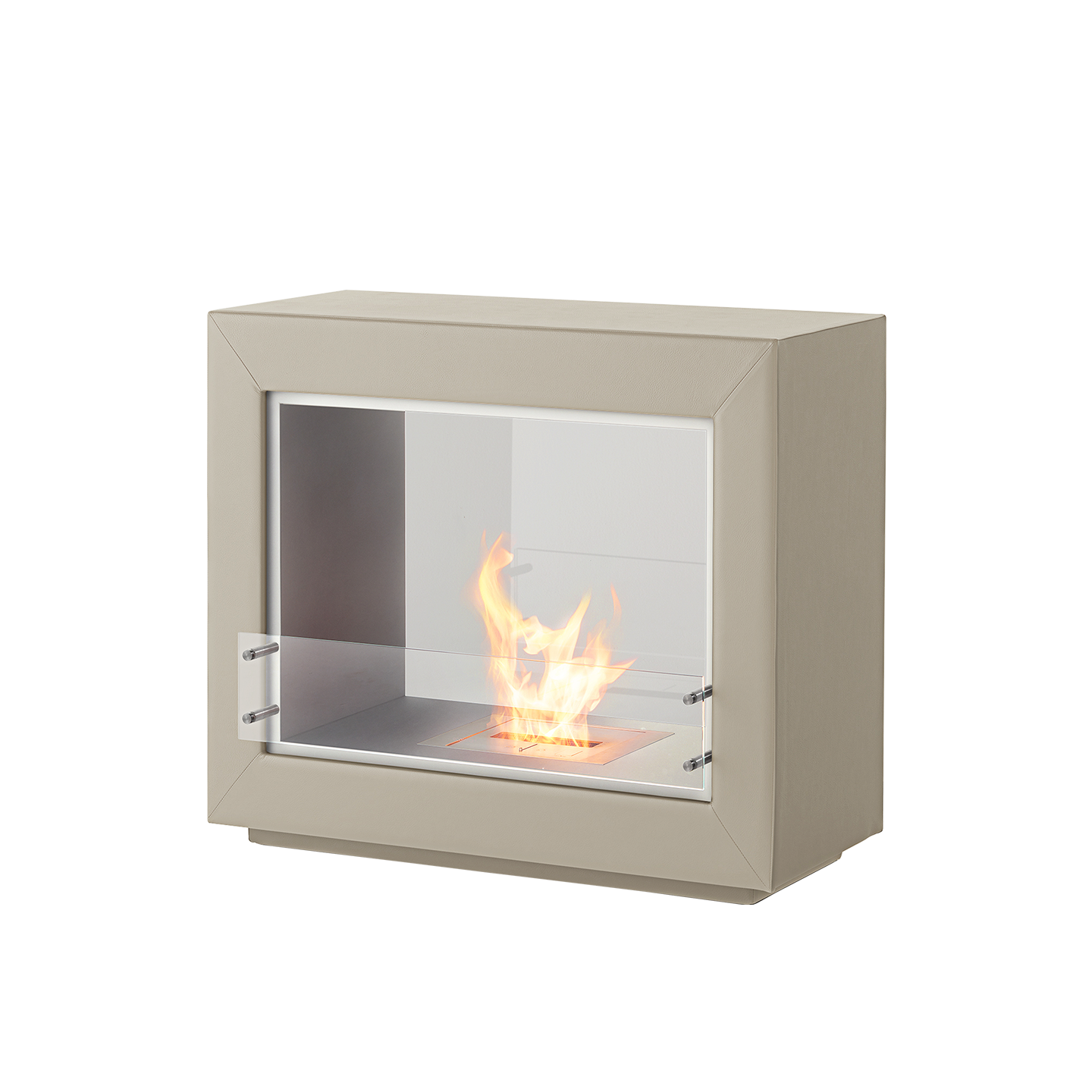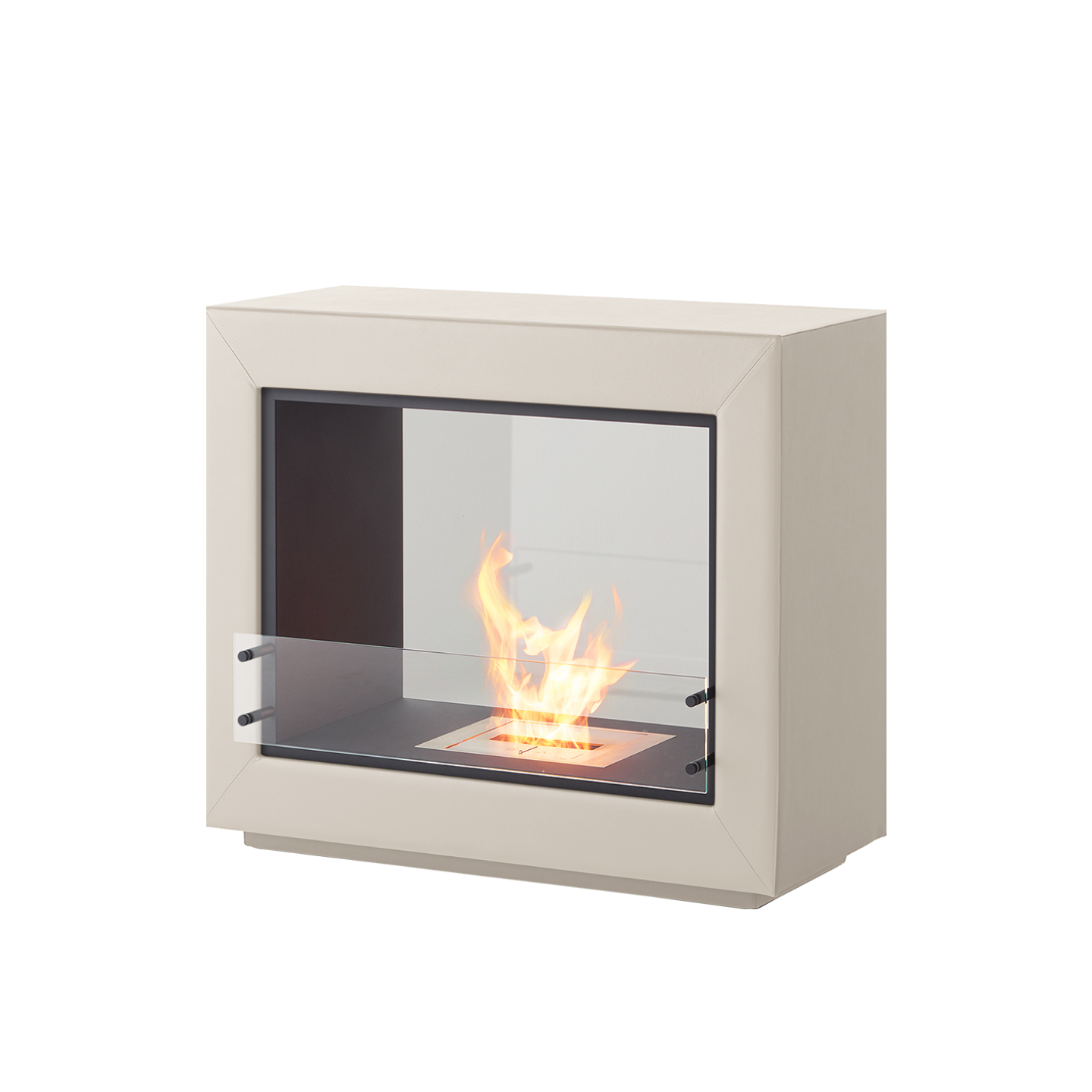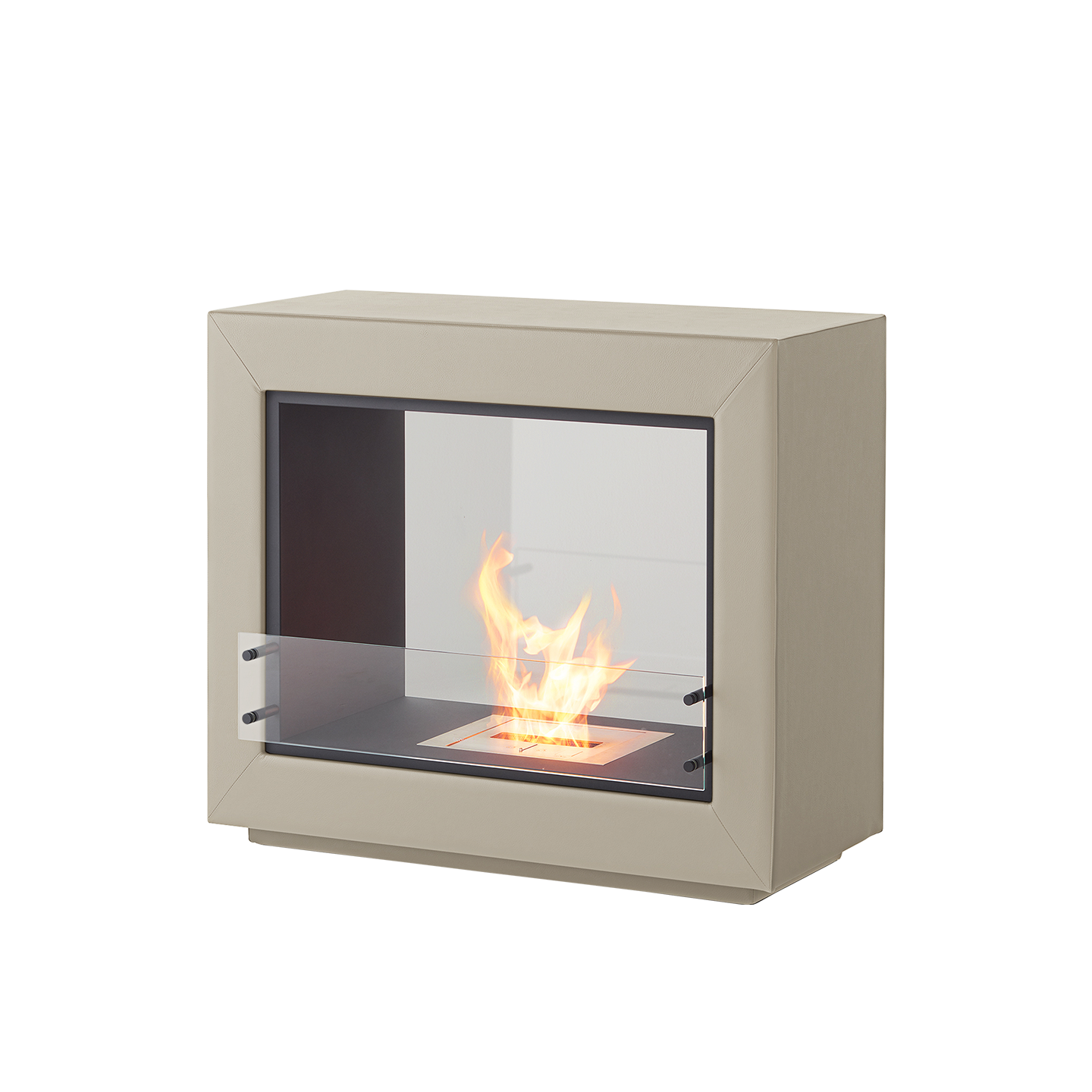 エコスマートファイヤー「Vision Leather」は同シリーズの中で一番大きいサイズで高級感、重厚感があります。また背面が耐熱性の強化ガラスで覆われている為、空間の中央に設置することが可能です。「BK5」バーナーが搭載されており火力調整が可能な他、25帖程の暖房能力も有しています。外側は高級感のある本革張りで計4色から、内側はステンレス、ブラックスチールの2色からお選びいただけます。バイオエタノール暖炉は綺麗なオレンジ色の炎を演出します。暖房能力も高く、燃焼時に発生する水蒸気により加湿効果も得られます。