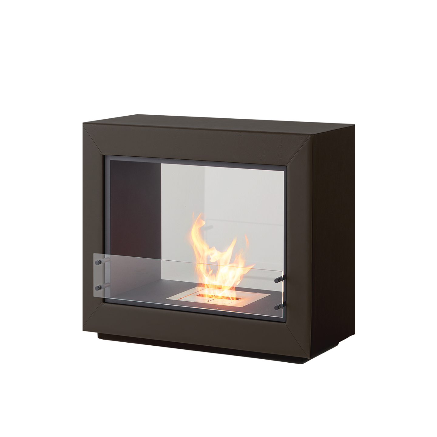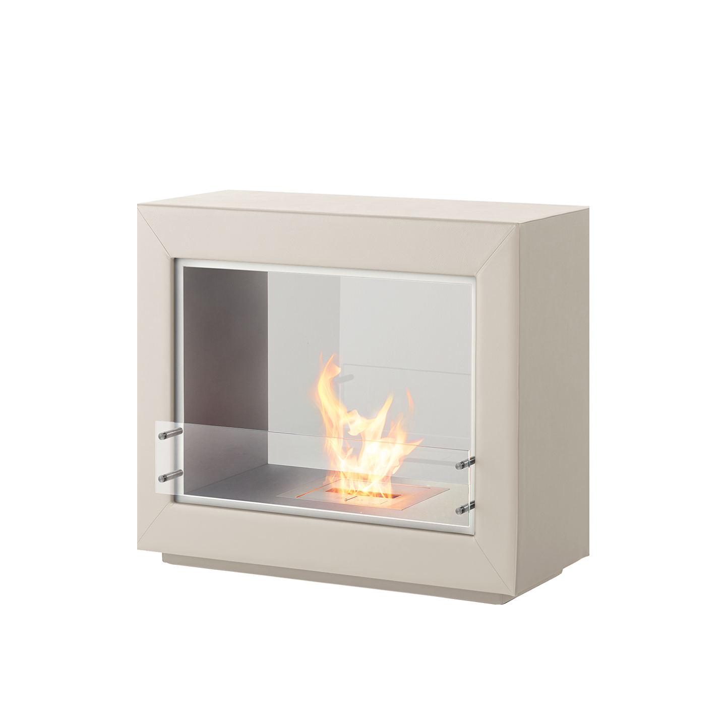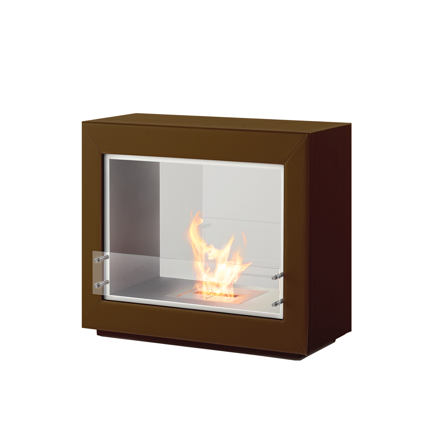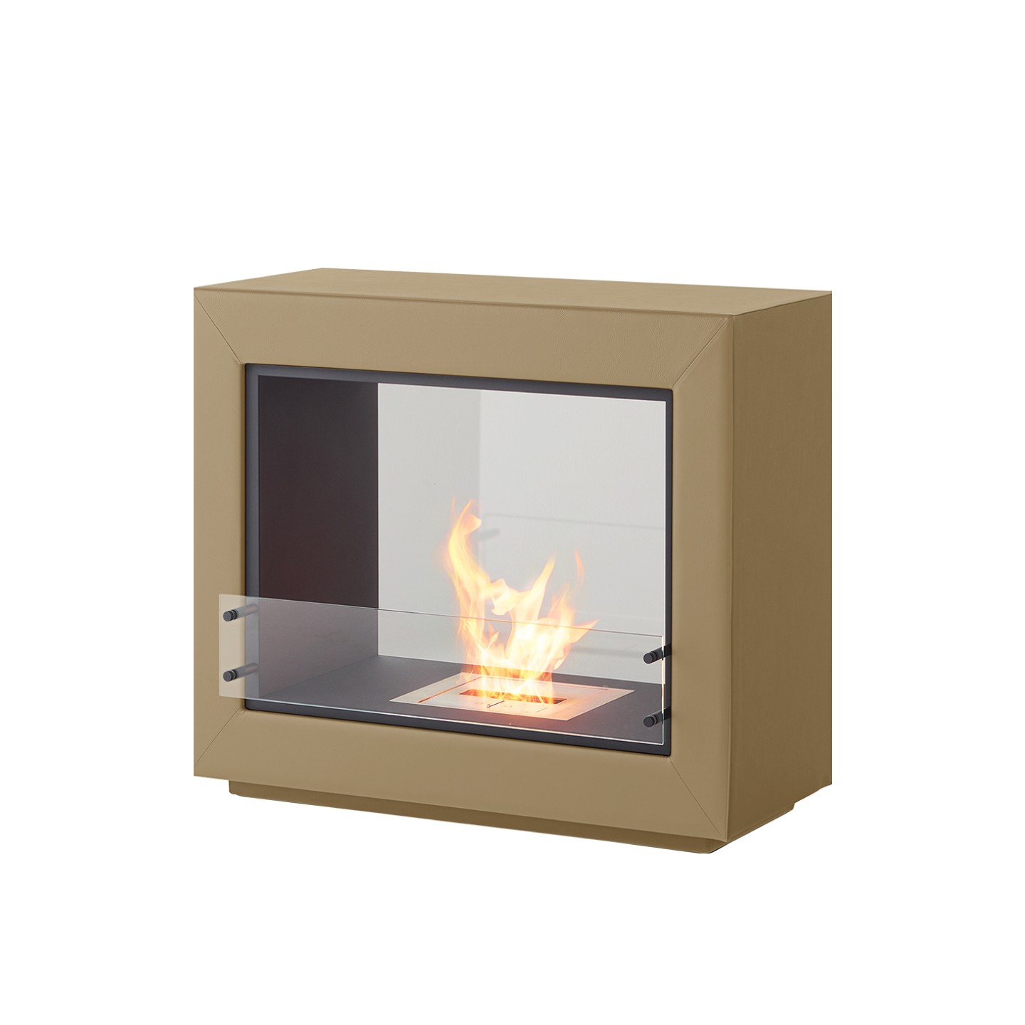 エコスマートファイヤー「Vision Leather」は同シリーズの中で一番大きいサイズで高級感、重厚感があります。また背面が耐熱性の強化ガラスで覆われている為、空間の中央に設置することが可能です。「BK5」バーナーが搭載されており火力調整が可能な他、25帖程の暖房能力も有しています。外側は高級感のある本革張りで計4色から、内側はステンレス、ブラックスチールの2色からお選びいただけます。バイオエタノール暖炉は綺麗なオレンジ色の炎を演出します。暖房能力も高く、燃焼時に発生する水蒸気により加湿効果も得られます。